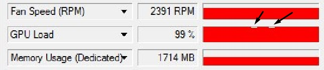 Есть пункт где показывает загрузку GPU в работе 99% но когда найдено решение нагрузка немного уменьшается и получается небольшой провал в графике.