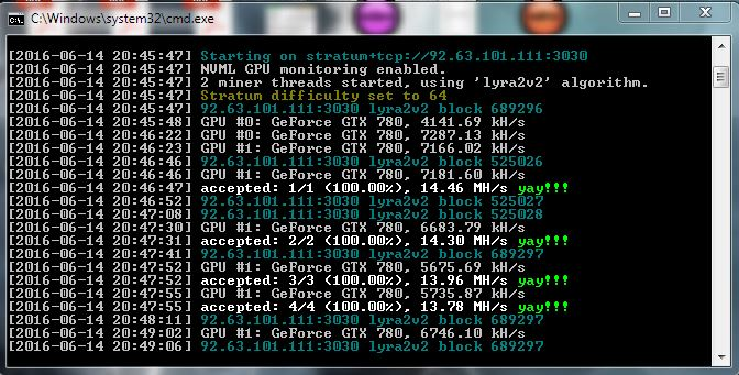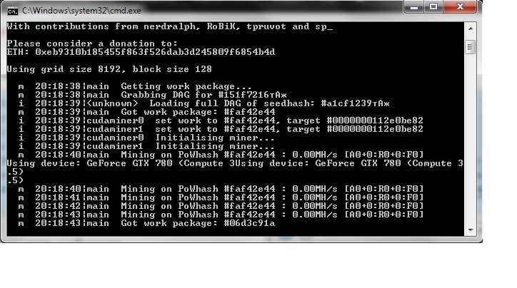 Виталий Дрозд писал(а): Нет. Карты майнер определяет. setx GPU_FORCE_64BIT_PTR 0 setx GPU_MAX_HEAP_SIZE 100 setx GPU_USE_SYNC_OBJECTS 1 setx GPU_MAX_ALLOC_PERCENT 100 setx GPU_SINGLE_ALLOC_PERCENT 100 timeout /t 1 ethminer.exe -U -F http://92.63.101.111:6000/104625 timeout /t 10 так попробуйте Потом так setx GPU_FORCE_64BIT_PTR 0 setx GPU_MAX_HEAP_SIZE 100 setx GPU_USE_SYNC_OBJECTS 1 setx GPU_MAX_ALLOC_PERCENT 100 setx GPU_SINGLE_ALLOC_PERCENT 100 timeout /t 1 ethminer.exe -U -F http://92.63.101.111:6000/104625 --farm-recheck 1000 --cuda-block-size 64 --cuda-grid-size 4096 timeout /t 10 |