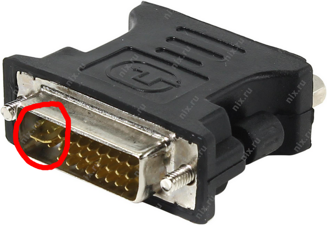 Просто бывают DVI-I, фото которого я выкладывал, а бывают DVI-D, как у вас. Так я не понимаю, в чем проблема, вот такой переходник нужен, стоит также не больше 100 рублей: