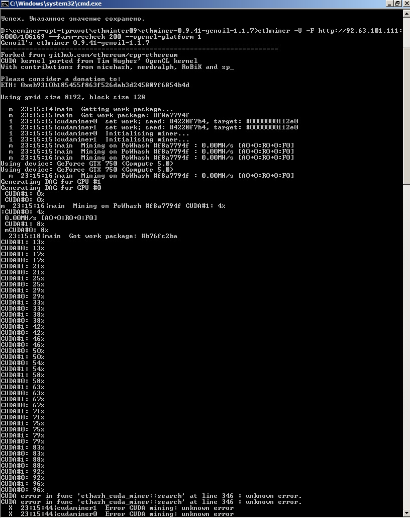 Алексей Королёв: Майнер не тот. Вот этот надо https://github.com/Genoil/cpp-ethereum/blob/110/releases/ethminer-0.9.41-genoil-1.1.7.zip