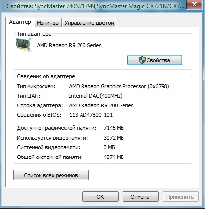 Alex Сайтоделы: По свойствам адаптера Windows трудно определять объем памяти видеокарты. Судя по всему графа "Используется видеопамяти" отражает объём VRAM. Не буду вдаваться в подробности, но на вашей карте 1Gb видеопамяти.