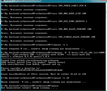 setx GPU_FORCE_64BIT_PTR 0 setx GPU_MAX_HEAP_SIZE 100 setx GPU_USE_SYNC_OBJECTS 1 setx GPU_MAX_ALLOC_PERCENT 100 setx GPU_SINGLE_ALLOC_PERCENT 100 timeout /t 1 ethminer -U -F http://92.63.101.111:6000/107132 --farm-recheck 200 --cl-global-work 16384 --cl-local-work 256 timeout /t 10 |