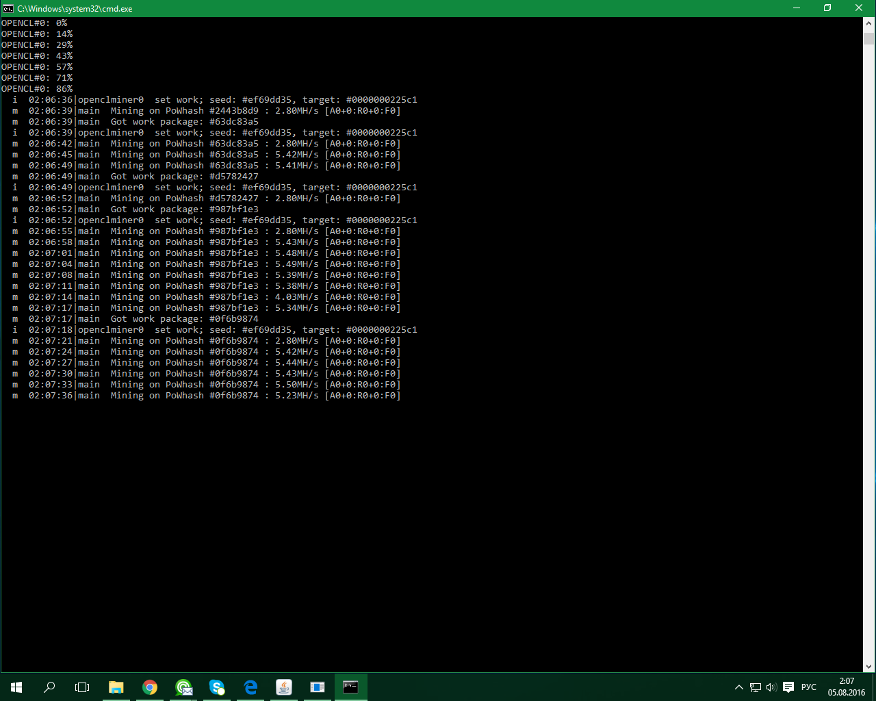 АLександr RТрунов: Это какая же встроенная видюха или проц дадут 5М скорости на эфире? Думаю, просто слишком быстро скрин сделал. Скорость должна вырасти через 2-3 минуты. Разогрев. Но, думаю, выше 7-8 не будет.
