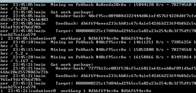 Таким образом, увеличивая эти параметры, можно немного повысить скорость майнинга, а следовательно и нахождения решений. Также на скорость майнинга влияет частота универсальных процессоров ГПУ, зависящая от самого ГПУ. То есть, разгон чипа также повышает скорость. workloop в майнере - это не решения. Решения сопровождаются надписью "B-) Submitted and accepted" И обновите уже майнер. Вы используете старую версию. Последние версии от разработчика находятся здесь. |