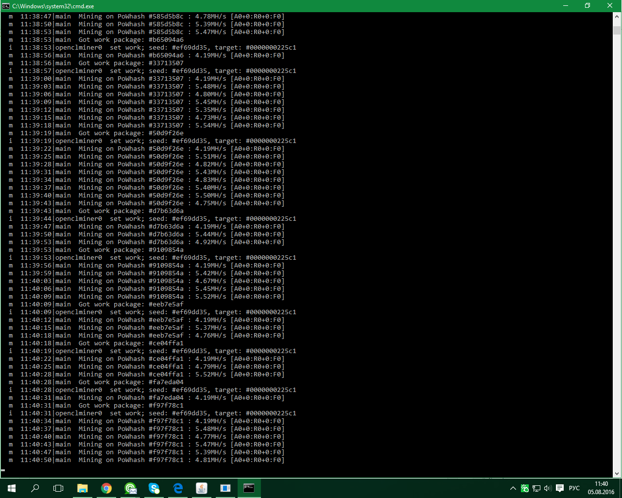 1 Батник: setx GPU_FORCE_64BIT_PTR 0 setx GPU_MAX_HEAP_SIZE 100 setx GPU_USE_SYNC_OBJECTS 1 setx GPU_MAX_ALLOC_PERCENT 100 setx GPU_SINGLE_ALLOC_PERCENT 100 timeout /t 1 ethminer -G -F http://92.63.101.111:6000/101162 --farm-recheck 3000 --cl-global-work 16384 --cl-local-work 128 timeout /t 10 Скрин: ![]() 2 батник: setx GPU_FORCE_64BIT_PTR 0 setx GPU_MAX_HEAP_SIZE 100 setx GPU_USE_SYNC_OBJECTS 1 setx GPU_MAX_ALLOC_PERCENT 100 setx GPU_SINGLE_ALLOC_PERCENT 100 timeout /t 1 ethminer -G -F http://92.63.101.111:6000/107177 --farm-recheck 3000 --cl-local-work 256 --cl-global-work 16384 timeout /t 10 Скрин: