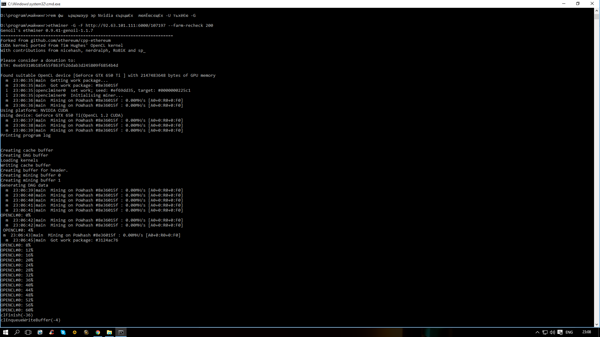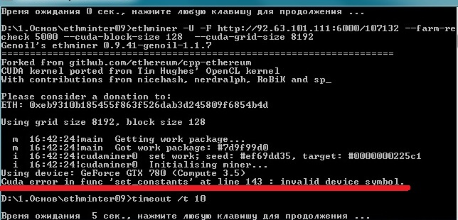 Виктор Тарасов писал(а):скачал ethminer-0.9.41-genoil-1.1.7-cuda6.5 - не работает, какая-то команда для старой версии не работает для новой setx GPU_FORCE_64BIT_PTR 0 setx GPU_MAX_HEAP_SIZE 100 setx GPU_USE_SYNC_OBJECTS 1 setx GPU_MAX_ALLOC_PERCENT 100 setx GPU_SINGLE_ALLOC_PERCENT 100 timeout /t 1 ethminer -U -F http://92.63.101.111:6000/107132 --farm-recheck 5000 --cuda-block-size 128 --cuda-grid-size 8192 timeout /t 10 pause