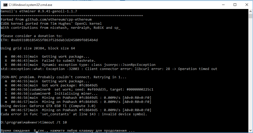 Aleksandr Degtiarev: Как писал Виктор Тарасов пробуй старые версии майнера. НО ТОЛЬКО ЕСЛИ У ТЕБЯ GTX 650 Ti 2048 Мб видеопамяти.