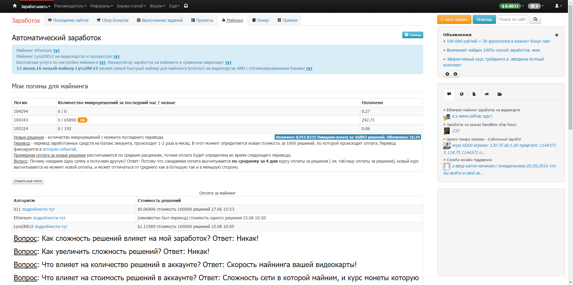 Ethereum подробности тут (неизвестно был переход) стоимость одного решения 15.08 10:30 Lyra2REv2 подробности тут $1.11589 стоимость 100000 решений 15.08 10:05 ну и что дальше то. выплаты то будут уже |