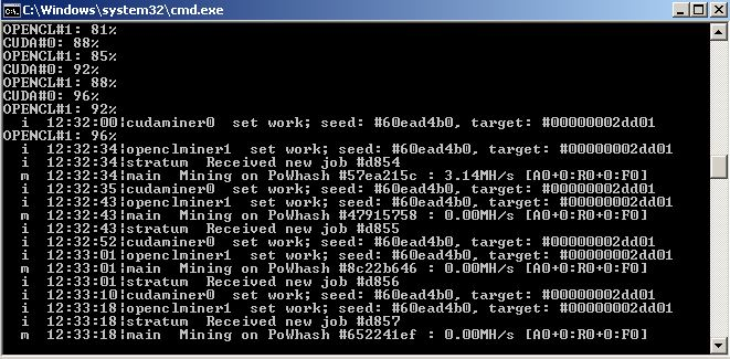 Владимир Борисов писал(а):Да с -X.... без параметра -X он бы не стал врубать и openCL и Cuda. Может дрова на nVidia кривые? (не те что нужно для майнинга) т.к. Radeon вначале что-то выдал.... а как nVidia подгрузилась сразу по нулям (на первом скрине видно, что CUDA чуть отстает по загрузке) |