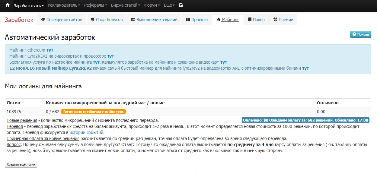 Теперь по порядку какой майнер, видюшка, система, ОЗУ и т.д.