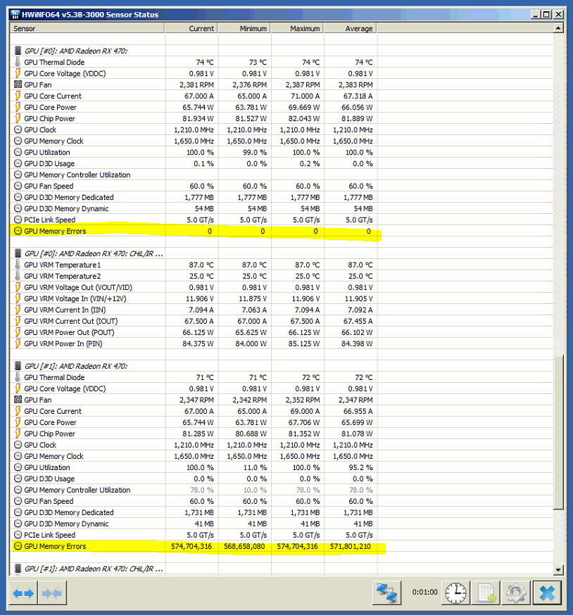 на дефолтных настройках одна карта кажет 0, у второй же овер 500М сразу при запуске мониторинга