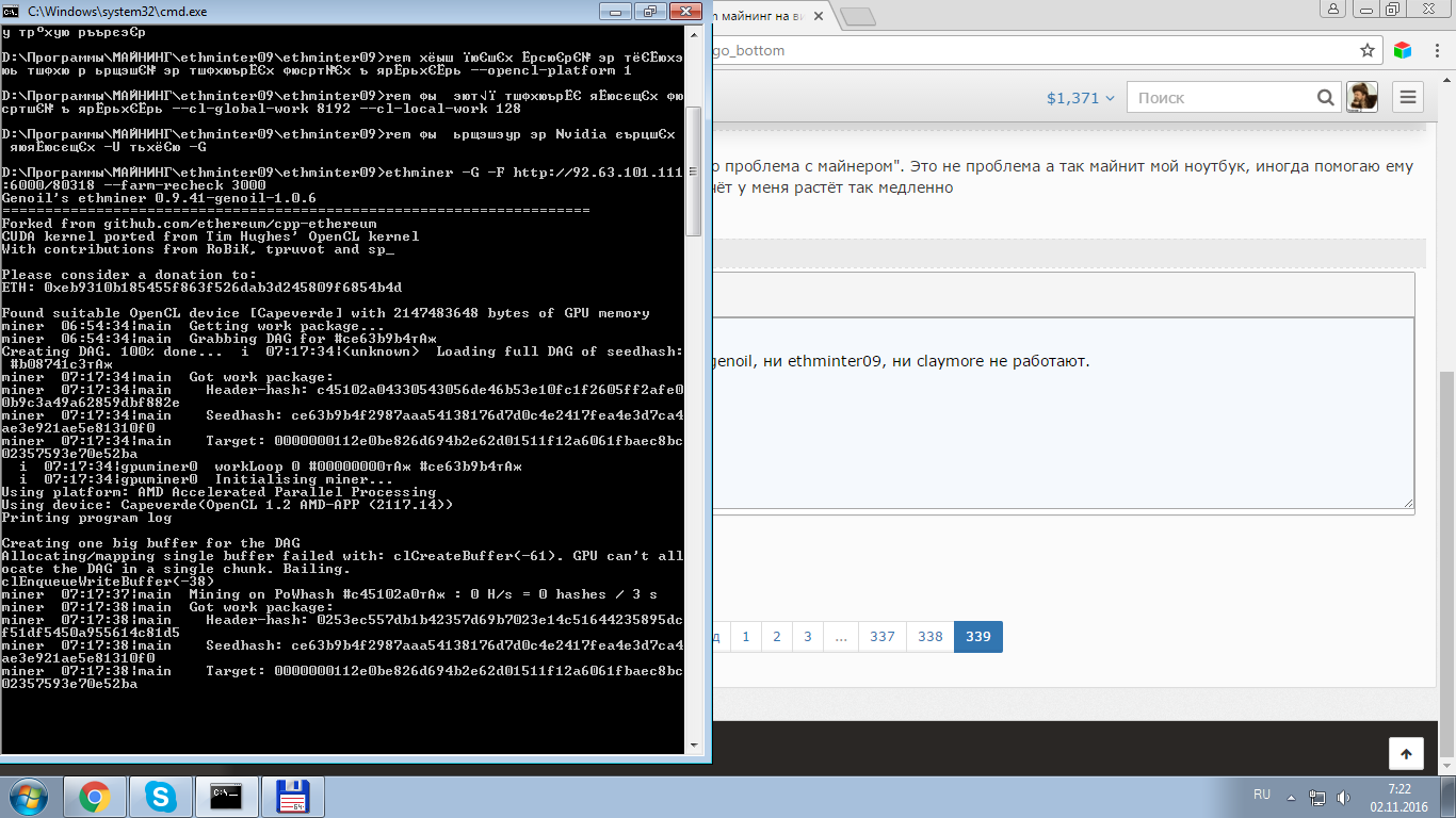 Обьясни пожалуста, после появления надписи "Возможно проблема с майнером", счёт у меня прекратился= 1210 хотя ничего не менял в батнике, думал трудности с сайтом. может подскажешь в чём дело?