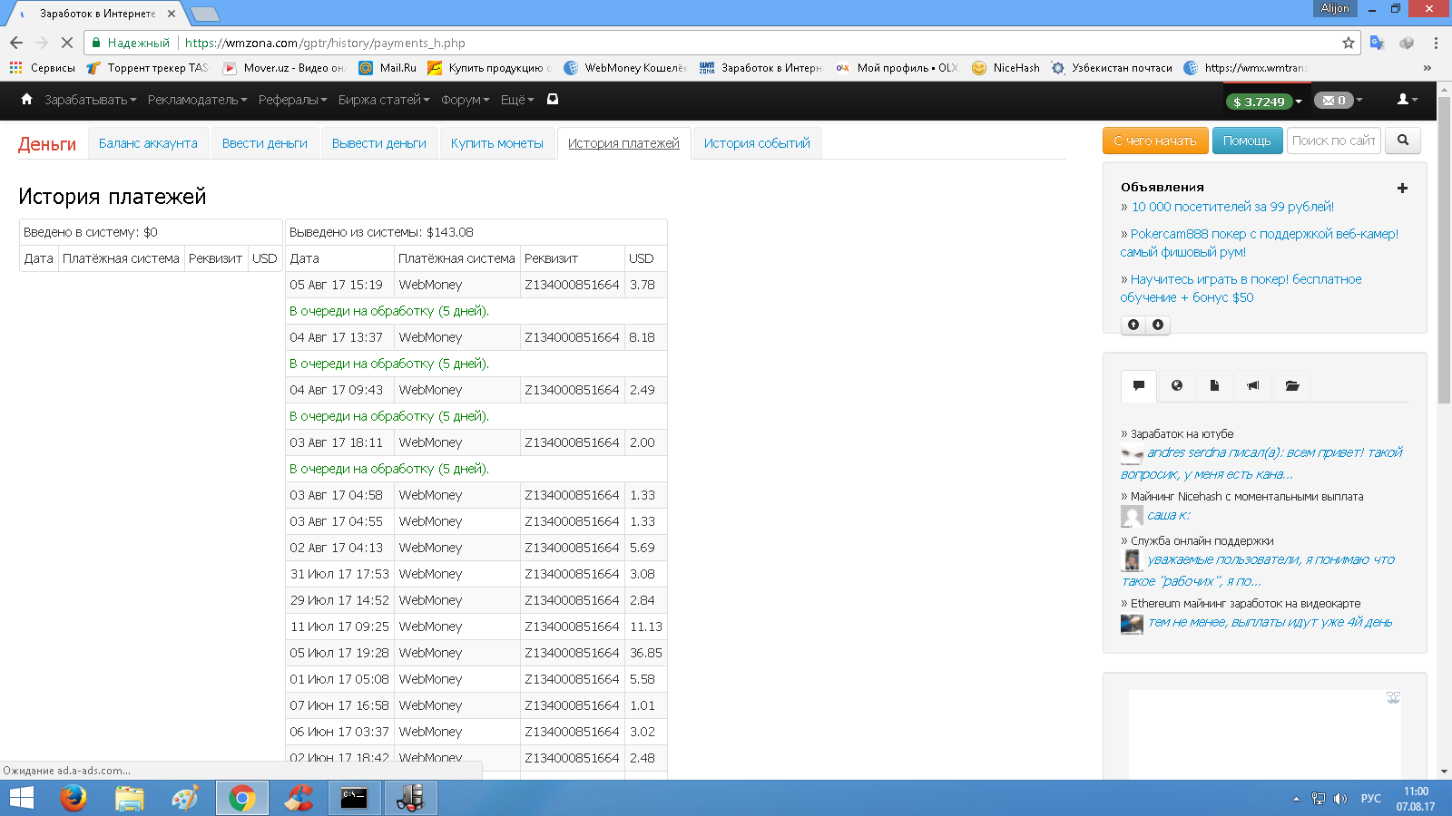 Андрей С: не сюда возвращаться нет желания , теперь только найсом на кошелёк вмх , раз в неделю выплата и сразу переводят. Сюда найсом только через день , а после развала биржы .... Решений дохрена потеряли люди , плюс камисии платить , проще на свой кошелёк вэб мани сразу получать выплаты с найса напрямую чтоб не тратить деньги на комиссию вм зоны
