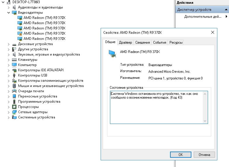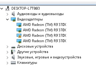 подскажите как вылечить данную проблему, при любом раскладе -1 видяха после обновления драйверов, если две подключены то одна под знаком, если три то одна под знаком, и так до 5
