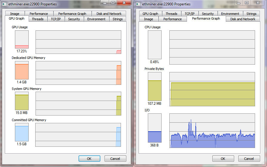 Виктор Тарасов писал(а): Не уверен, что по количеству свободной мамяти можно оценить какое приложение сколько потребляет памяти. Проще наверное воспользоватся утилитами, реально 107,2мб частный набор памяти в ОЗУ, на правом скрине и загрузка видеопамяти отображена на левом скрине тут все понятно без объяснений. Что до 1,5Гб которое можно увидеть при старьте Ethereum это даже плюс нежели чем минус, меньше обращений к винчестеру, система сама освобождает и уменьшает это пространство при надобности. Легко проверить если есть фотошоп или другая программа в которой можно выставить использовать большой размер ОЗУ.