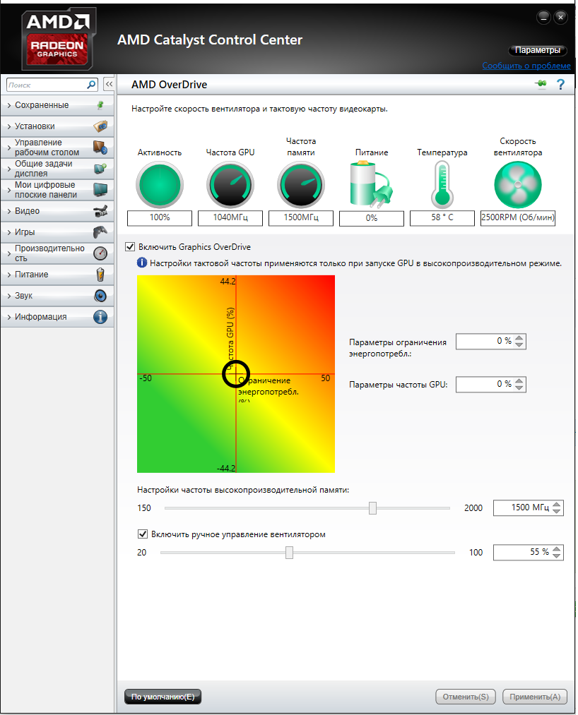 Сергей Исаев: Где ты там вольтаж увидел? Может имеешь ввиду Power Limit (Ограничение энергопотребления)? Каталист не регулирует напряжение (вольтаж) видеокарты.