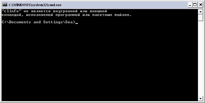 andra bond: Скачайте отсюда OpenCL, установите и еще раз cmd \k clinfo