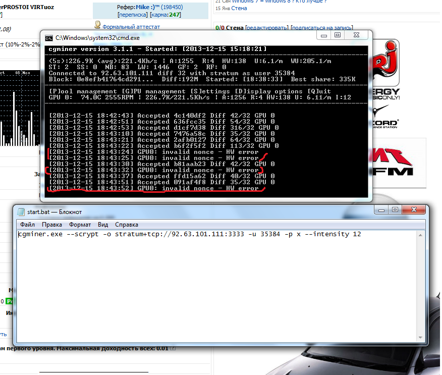 А меня больше всего раздражает в программе такая надпись :GPU0 : invalid nonce-HW error ! Чё она означает то ?