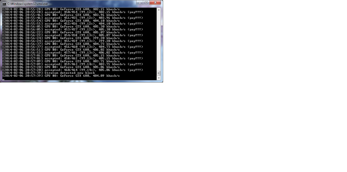 Дмитрий Дмитрий писал(а): у меня так: -H 1 -C 1 -d 0 -i 0 -l K8x32 ( где -H 1 процессор помогает gpu, а -H 2 не помогает...я так понял перевод).У меня с H 1 -лучше...После "К"-свои параметры лучше вставить, но и эксперименты не возбраняются... |