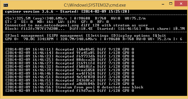 Это реальная скорость. Это действительно 1 карта GTX780. Это новая монета Maxcoin. Запущена в начале февраля 2014 года, то есть вот-вот. Сейчас одна монета стоит примерно в 10 раз меньше лайта, если я все правильно понимаю, но вот намайнить ее намного легче сейчас, да и срипт позволяет получить такие скорости, как на скрине вышеприведенном. Сейчас пытаюсь майнить на пендосовском пуле с обменом монет на битки, а битки в рубли затем. Если все получится, отпишу тут. Доход примерно в раз 10 больше, чем тут в единицу времени должен получится. Хотя может я и не прав. Посмотрим, как получится...