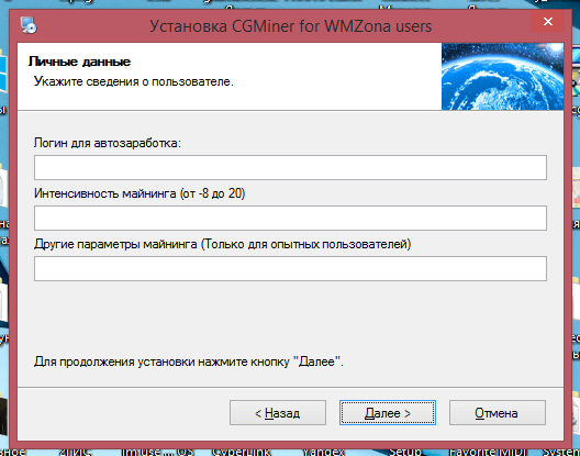 Александр Еленевич писал(а): это значит что пул усилиями всех воркеров отгадал блок полностью и он гадает новый то что у тебя нашлося новое решение тебе будет писать Accepted ..... поправьте если я не прав и ещё я сделал установочник cgminer для нашего проекта в ходе установки можно вписать сразу свой логин для заработка интенсивность и другие параметры скачать можно здесь скачать cgminer 3.1.1-3.4.0 скрин окна выбора