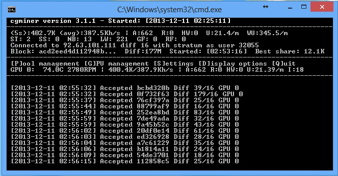кто подскажет, а то я всего второй день как пробую майнинг...
