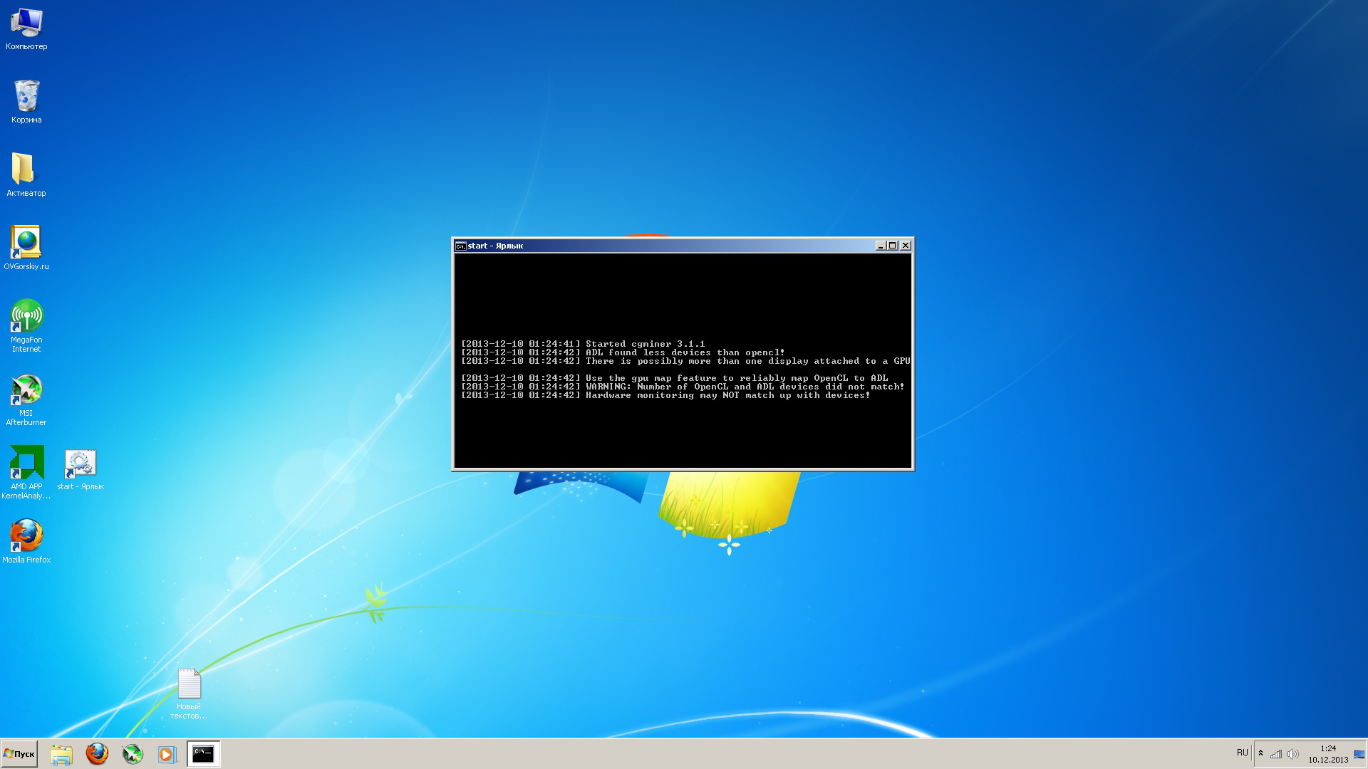 Андрей Повелицин: Смените программу майнер, для GeForce и Radeon разный