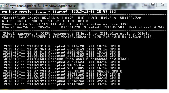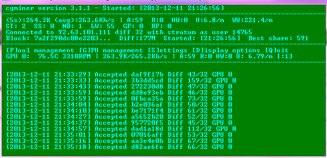 setx GPU_MAX_ALLOC_PERCENT 50 setx GPU_USE_SYNC_OBJECTS 1 cmd /k cgminer --scrypt -o stratum+tcp://92.63.101.111:3333 -u 31657 -p x --gpu-platform 1 --device 0 |