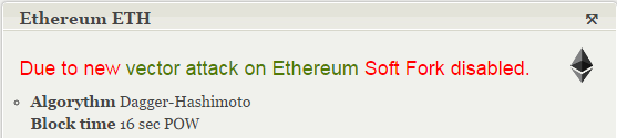 Igor M: ну вот перевод того, что ты заскринил что-то типа : в связи с новым вектором атаки на эфир софтфорк отключен.